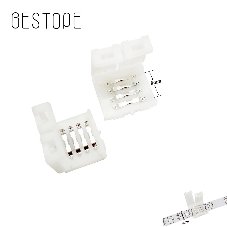 10Pcs 4 pin LED Strip Light Connector 8mm PCB Board Strip to Strip No Soldering Easy Connector Buckle For 2835 RGB Strip Light