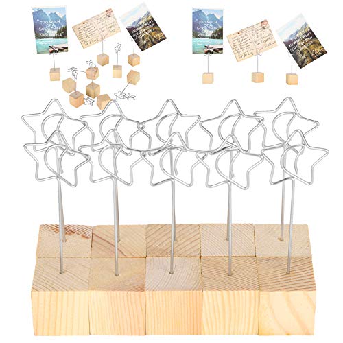 10PCS Clip per memo card, supporto per clip in metallo per appunti Porta carte per segnaposto in legno Picture Note Table Number Stand Picture Note Clip Holder Cancelleria per ufficio (motivo a stella