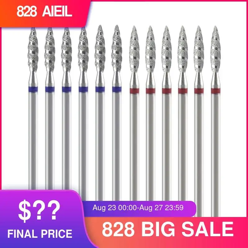 10PCS Tornado Flame Diamond Nail Drill Bit For Manicure Machine Cutters Rotary Burr Drill Accessories Spiral Nail Mills Tool