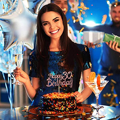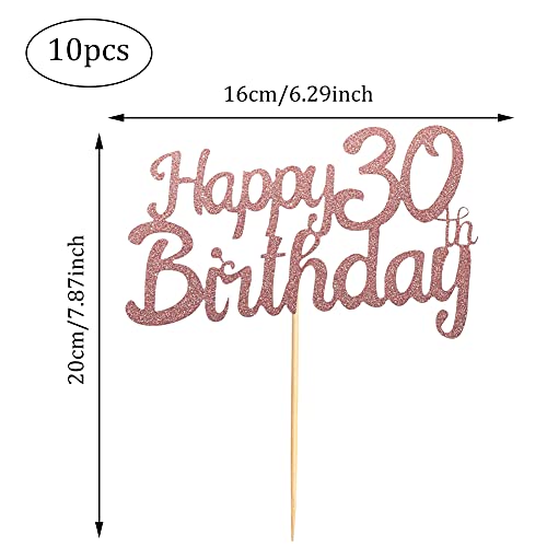 10PCS Torta Glitter Decoro Topper Decorazione per Torta Happy Birthday Cake Topper con Scritta"Happy 30th Birthday" con Glitter per Matrimonio Compleanno Baby Shower Party Decorazioni - Oro Rosa