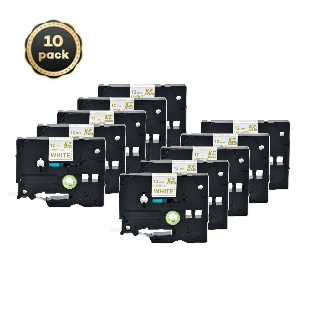 10pcs 12mm Tze234 tze tape Gold on White Laminated Label Tape Cassette Cartridge label ribbon Tze-234 tze 234 tze234 for P-touch