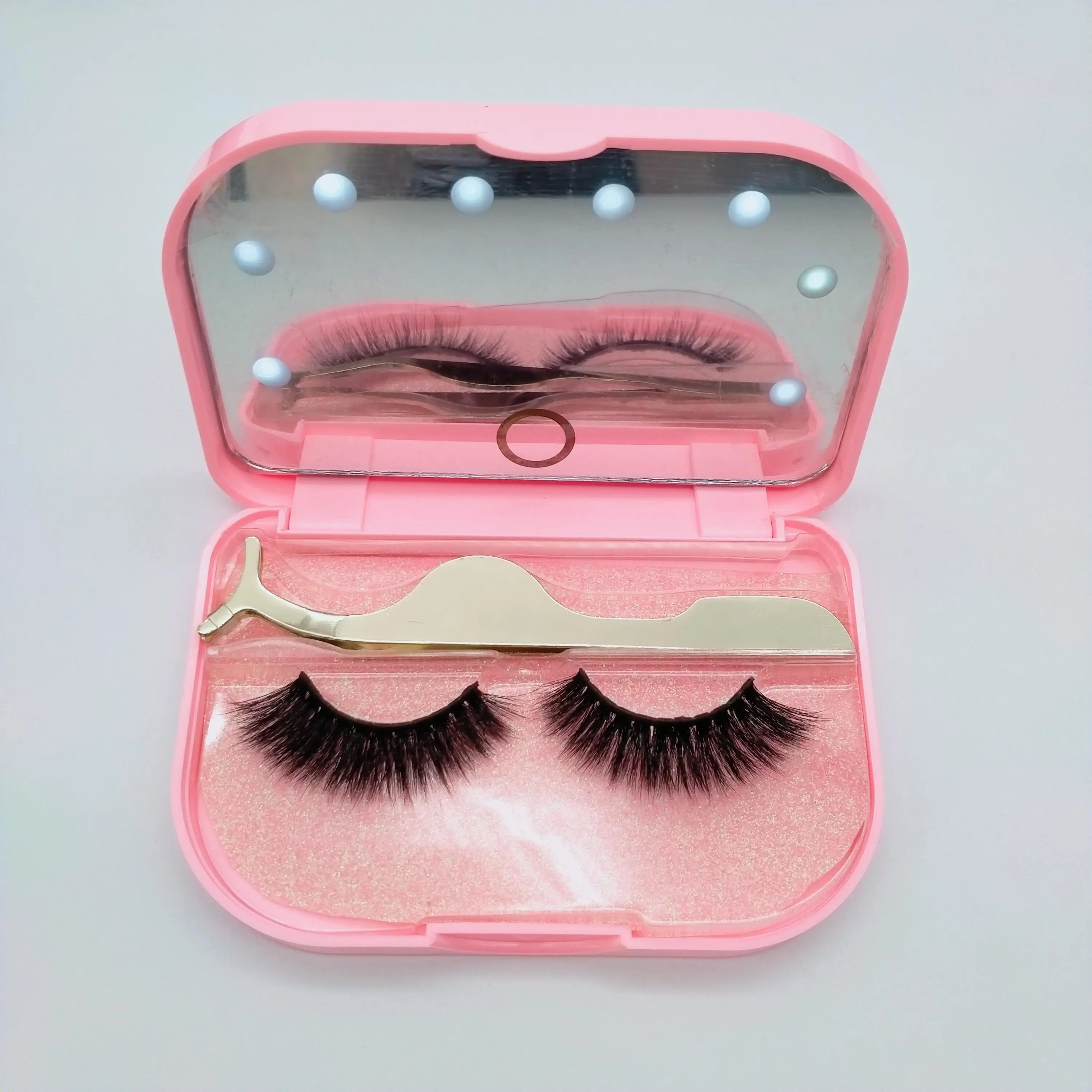 10PCS Wholesale Eyelash Boxes False Eyelash Plastic Case Mirror Private Makeup Lashes Packaging Box Mirrors With Led Light