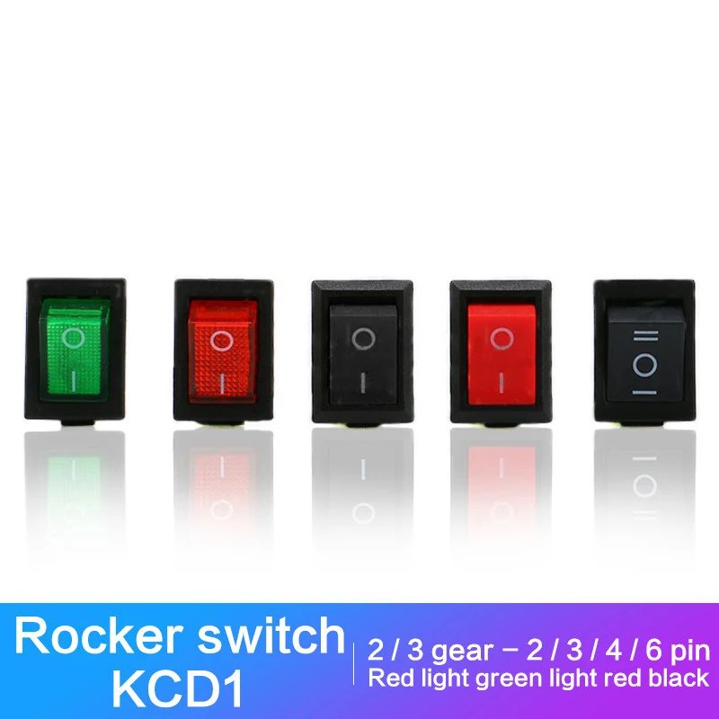 10pcs/lot 2/3/4/6pin Rocker Switch KCD1 ON-OFF-ON Light/no light Rocker Switch Connection,Used for TV/toy/home/Experiment Switch