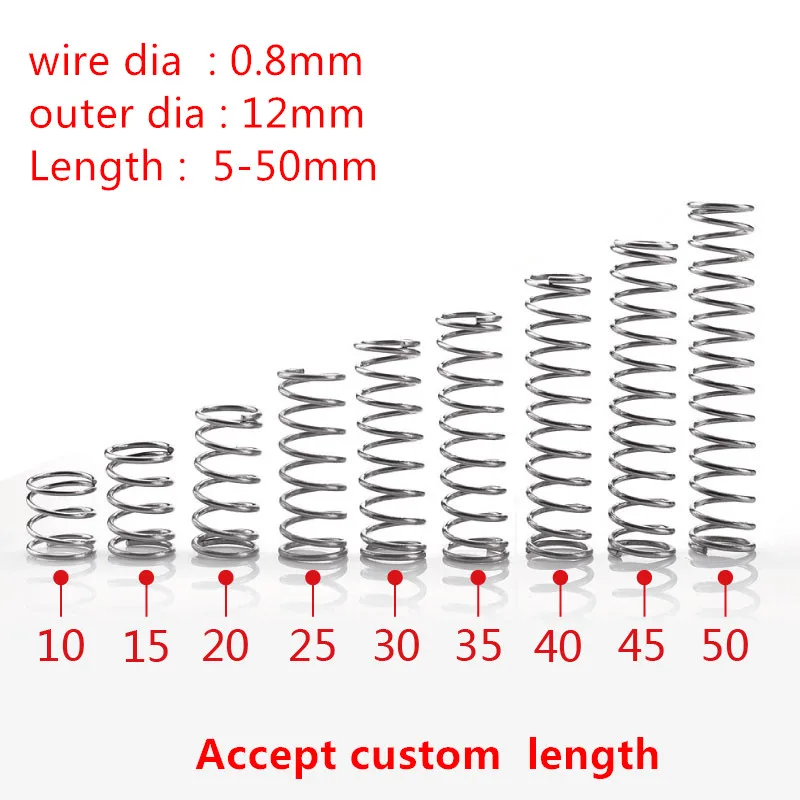10Pcs/lot 0.8mm 0.8x12mm Stainless Steel Compression Spring wire diameter 0.8mm outer diameter 12mm length 10-50mm