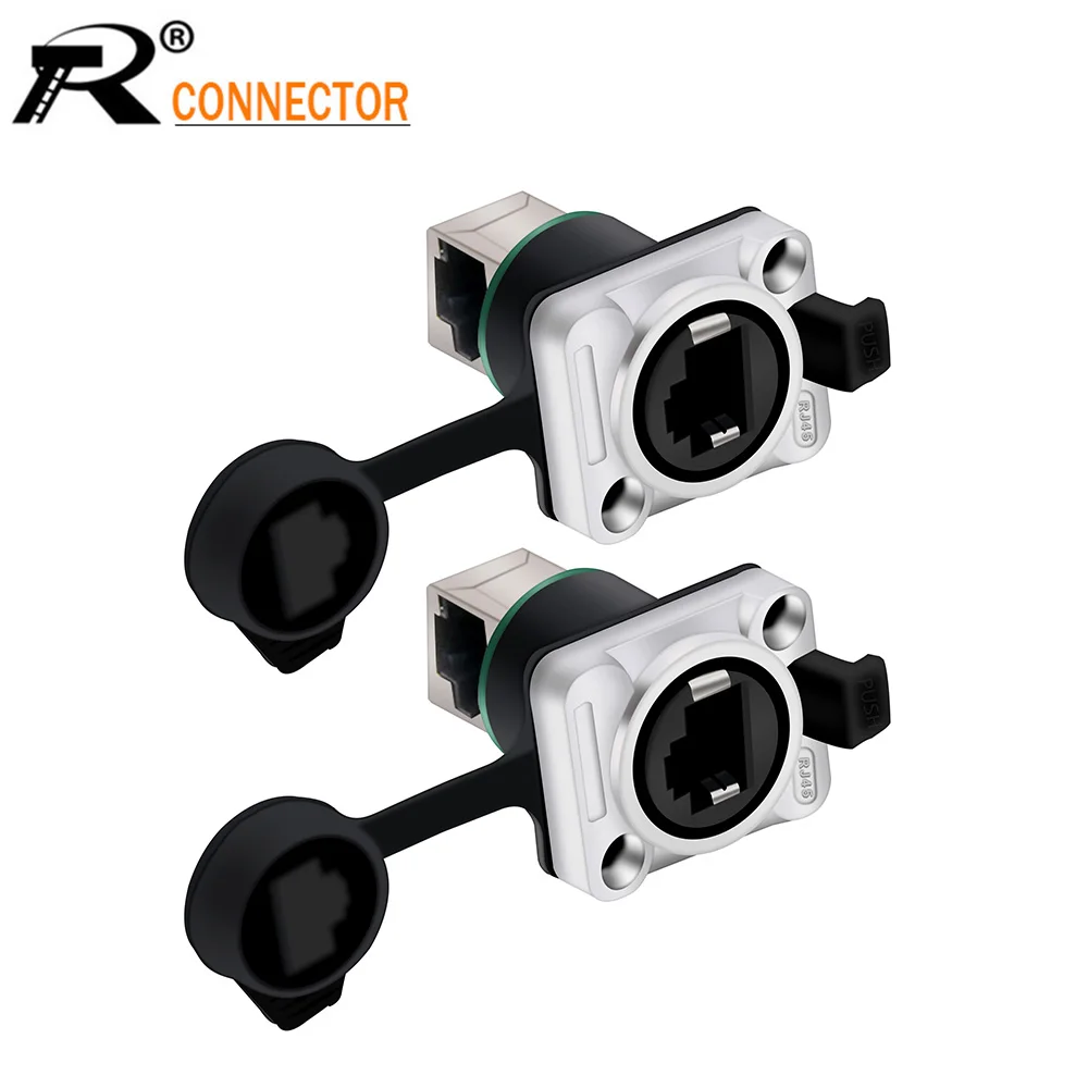 10pcs/lot RJ45 Connector Aviation Socket Waterproof Dual Network Port RJ45 Female Angle Styles 8p8c Panel Mount