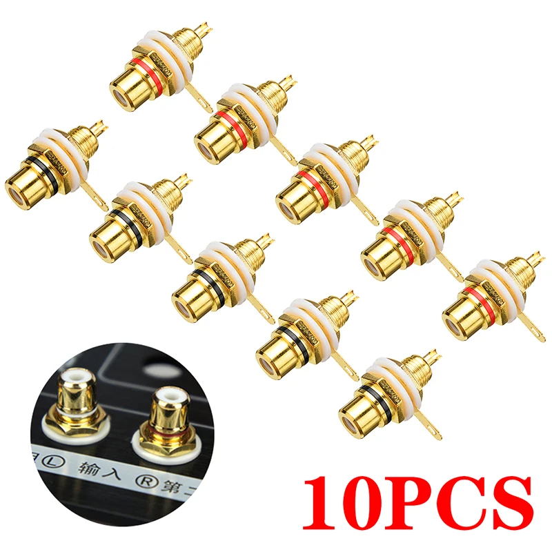 10pcs/lot RCA Jack Connector Panel Mount Chassis Audio Socket Plug Gold Plated Amplifier Audio Terminal RCA Connectors