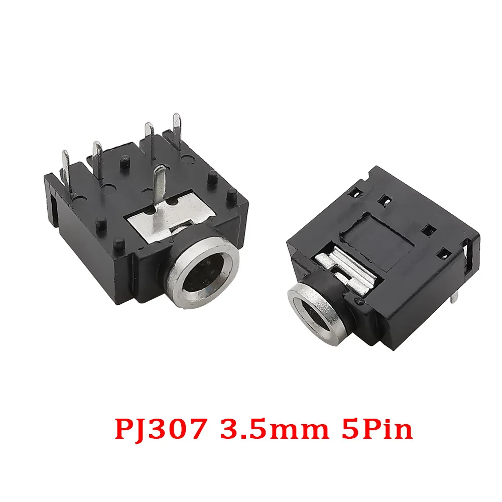 10Pcs/Lot PJ-307 3.5mm Jack 5 Pin Female Audio Stereo Socket PCB Mount Audio Connector PJ307 3F07 Audio Socket Adapter