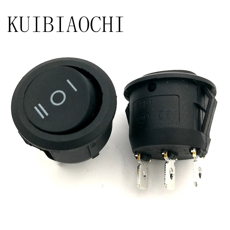 10pcs/lot Round Boat Rocker Switch 6A 250V AC / 10A 125V AC ON/OFF Snap in Black 3 PIN 3 way 20mm Diameter