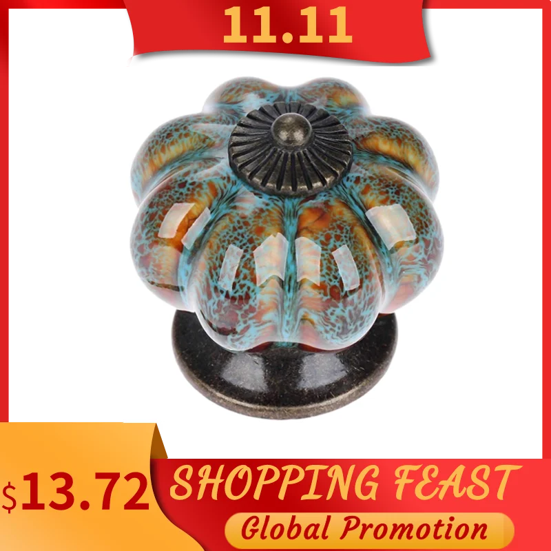 10Pcs/Set Ceramic Knobs with Colorful Knobs and Pumpkin Handles Drawer Ceramic Pulls for Cabinets, Kitchen and Bathroom Cabinets