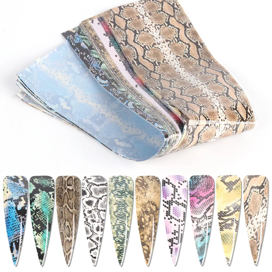 10pcs/set Snake Print Nail Foils Leopard Wild Animal Skin Transfer Sticker Slider Starry Sky Manicure Adhesive Sliders Nail Tip