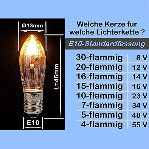 3 W lampadine per archi di candele, archi di luce o piramidi di Natale.Adatto anche a luci da fata con presa E10.Con un buon vecchio filamento per luce festosa e atmosferica.