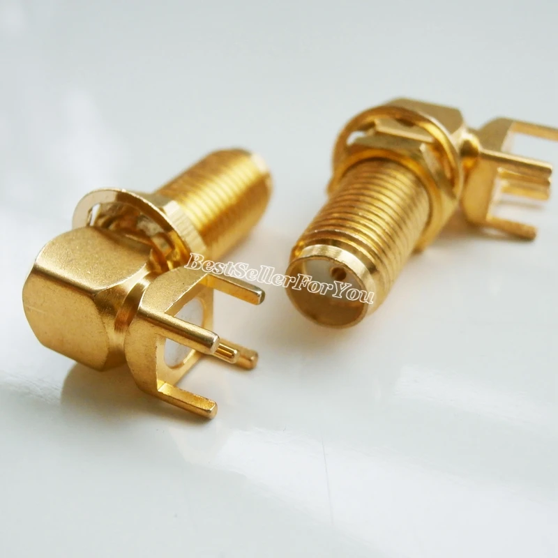 10Piece SMA Female Pin Jack Nut Bulkhead Right Angle Mount PCB Solder Square RF Connector Adapter
