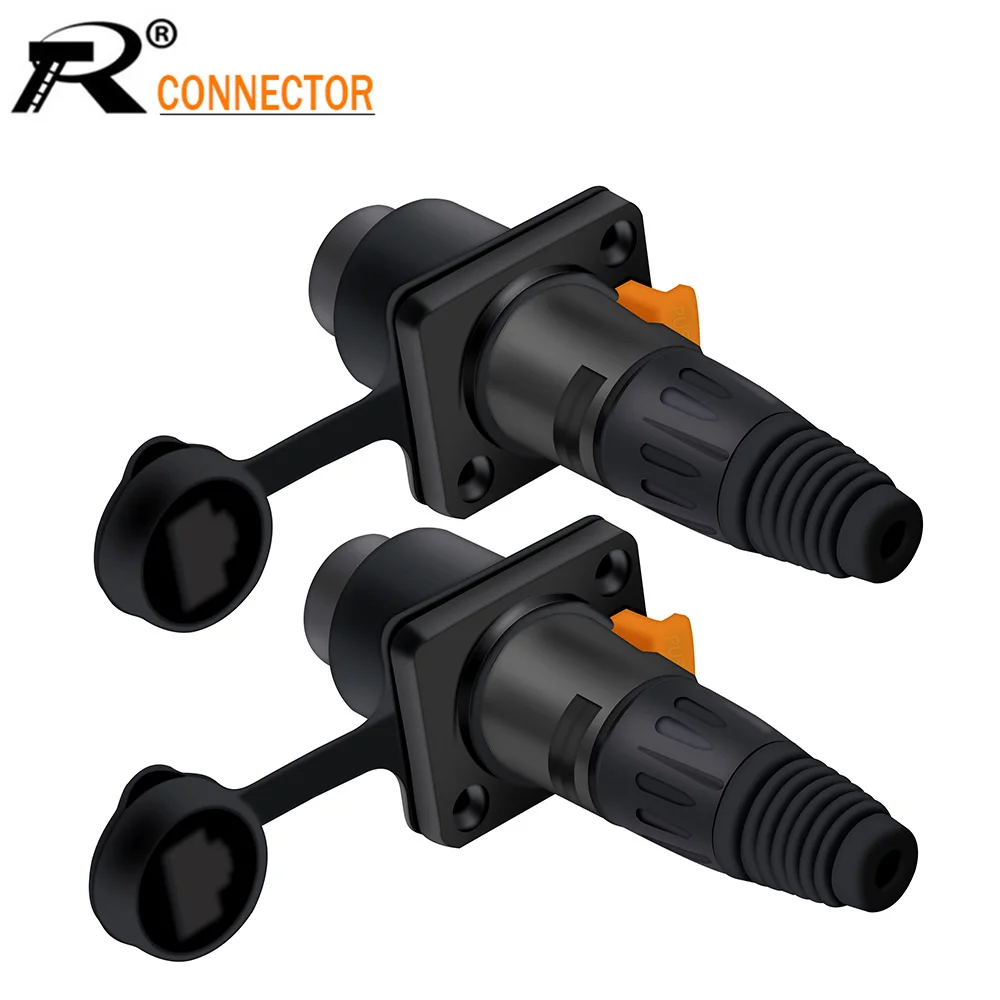 10sets RJ45 Aviation Female Socket+RJ45 Waterproof Male Plug Connector Panel Mount Ethernet Network Terminal Copper 8p8c Black