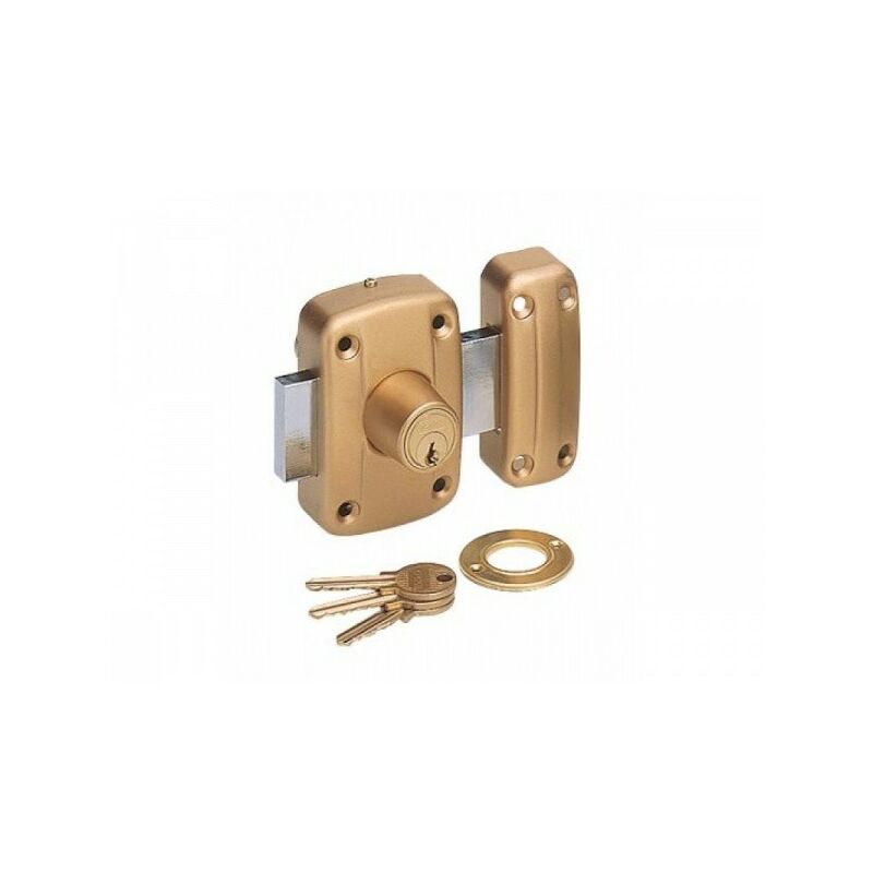 Dettagli: Serratura di sicurezza a 2 vie, placcata oro Attrezzatura: Fornito con 3 chiavi Caratteristiche: Colore: oro bronzato Cilindro: Ø 40 mm Attaccante: legno Numero di voci: 2