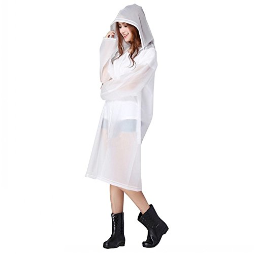 JZK 118cm Mantella poncho impermeabile antipioggia pioggia con cappuccio riutilizzabile portatile mantellina impermeabile per donna uomo, bianco trasparente