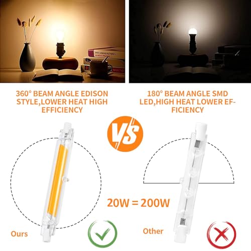 ZJZG 20W R7S LED 118mm Bianca Calda 3000K 2000LM Equivalenti a 200W Lampadine Alogene, Lampadina R7S LED 118mm Alta luminosità Nessun Sfarfallio, 2 Pezzi