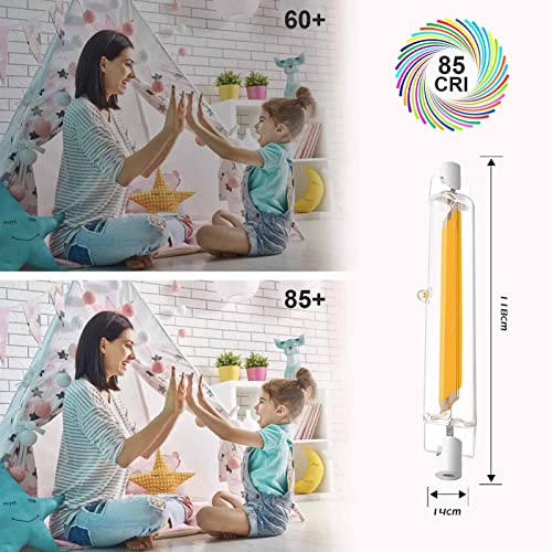 ☆【Ambiente romantico e sano】R7S LED 118mm è approvato CE. Non c'è piombo o mercurio,nessuna radiazione UV o infrarossa.un'elevata resa cromatica (CRI≥85),Fornire una luce morbida e calda senza riflessi e ombre dure, creare un'atmosfera romantica. Illumina la tua casa con un'eccezionale consistenza del colore