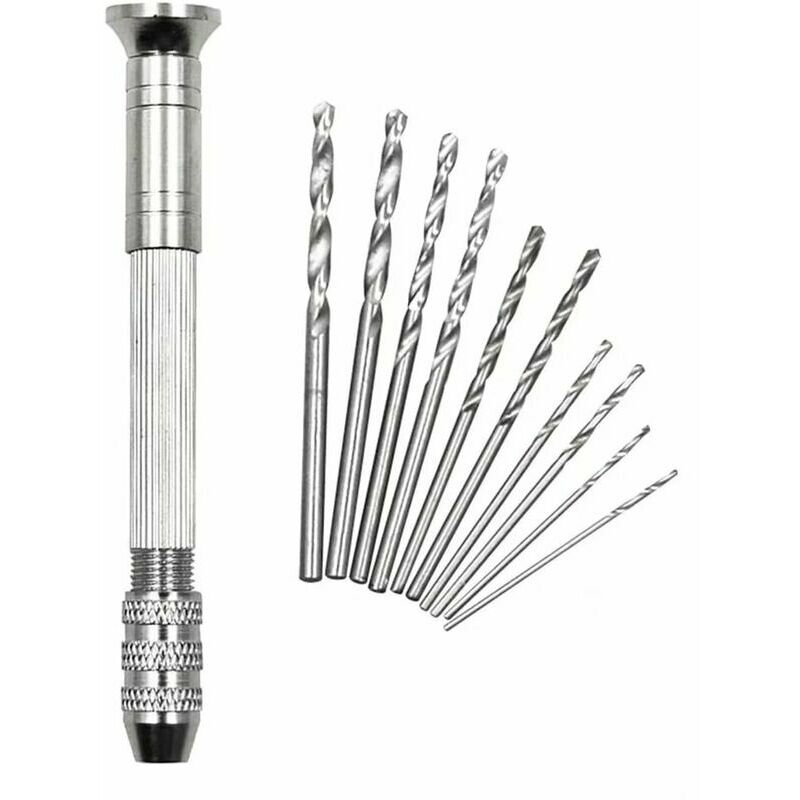 Mini set di trapani - : il pacchetto include 1 pezzo di trapano a mano, 10 punte da trapano 1.0 /1.0/ 1.5 /1.5/ 2.0 / 2.0 / 2.5 / 2.5 / 3.0 / 3.0 mm per soddisfare qualsiasi tua richiesta. 【Materiale in lega】 La micro punta elicoidale è realizzata in acciaio ad alta velocità ed è resistente. Dopo un uso ripetuto, la punta non scivolerà né cadrà e avrà una lunga durata. La testa e la coda del piccolo trapano elettrico possono essere svitate. Contiene due porta punte. Il design a 4 artigli viene utilizzato per fissare saldamente la piccola punta del trapano. E può regolare la punta elicoidale con un diametro di 1,0-3,0 mm. 【Applicabile con precisione】 L'uso più comune è la perforazione di precisione quando si lavora su piccoli progetti.L'impugnatura ergonomica consente di avere la giusta quantità di leva quando si ruota la morsa del perno, offrendo velocità e precisione. 【Ampia applicazione】 Questa mano del trapano viene utilizzata per tenere e ruotare piccole punte da trapano per
