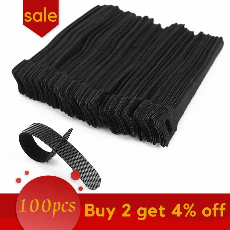 12*150 mm 100 pcs T-type Velcro cable tie adjustable black nylon computer data cable power cable tie wire