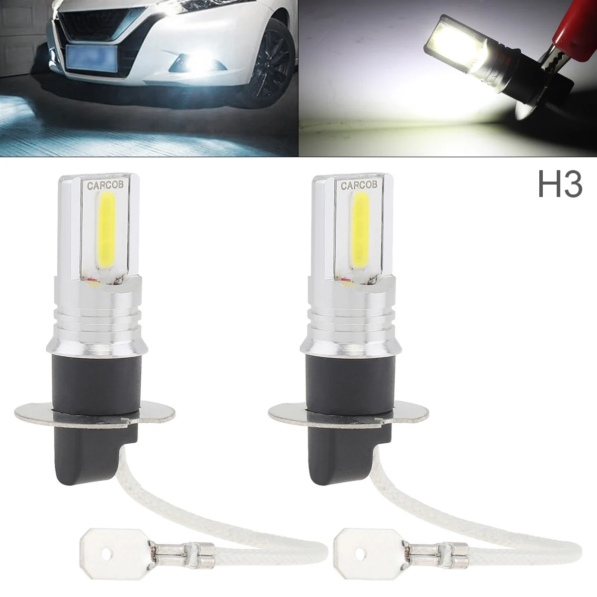2 Pcs DC 12-24V H3 12W COB Car Led Bulbs Lights 1200LM 6500K-7500K White Light Driving Running Car Lamp Auto Bulbs Fog Lamp
