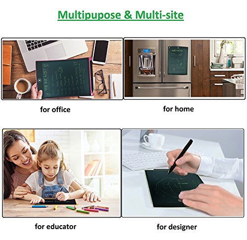 The case and LCD are made from durable plastic materials, and the back side can be used as a mouse pad. With a built-in magnet on its back side, the writing board can stick to the refrigerator door or a safe.