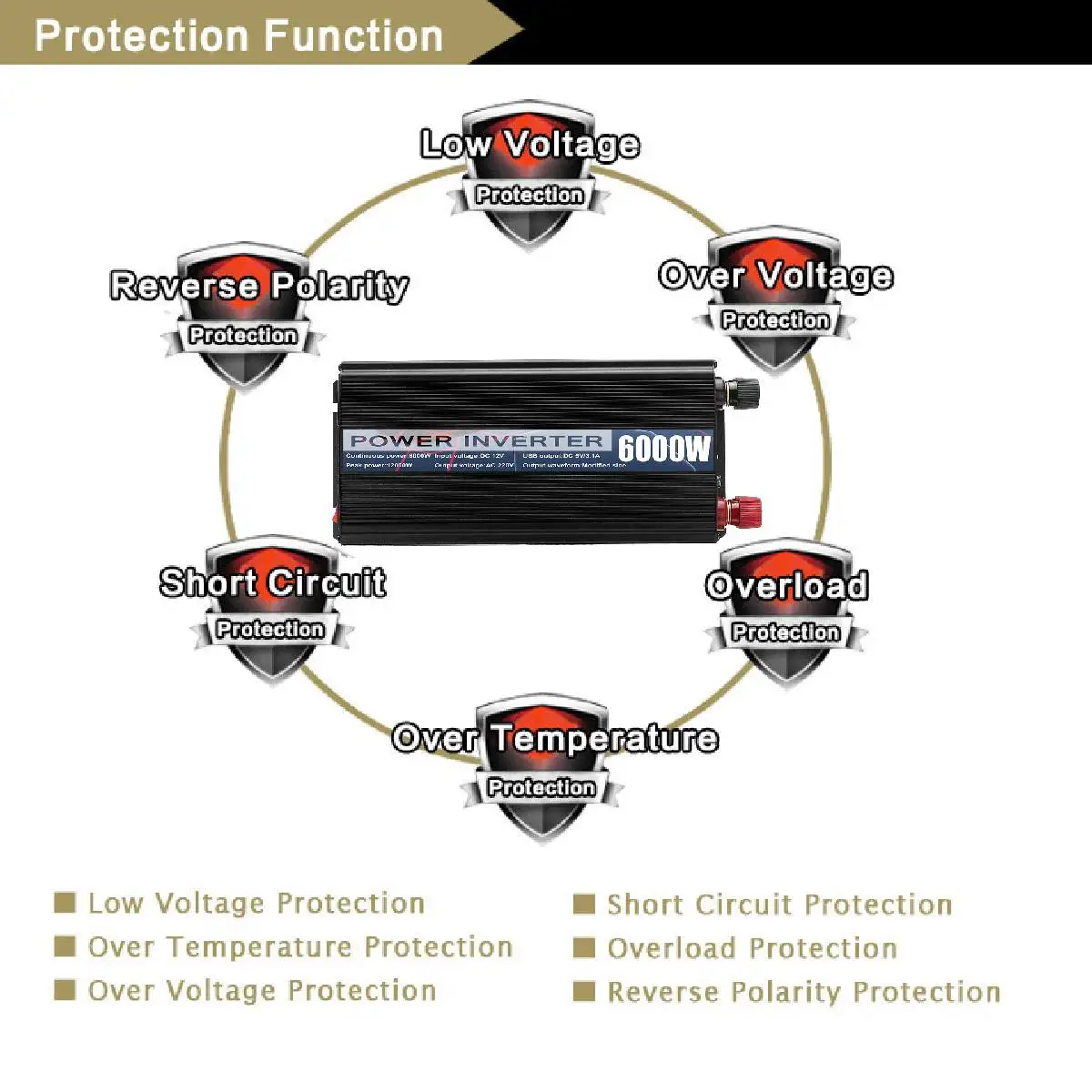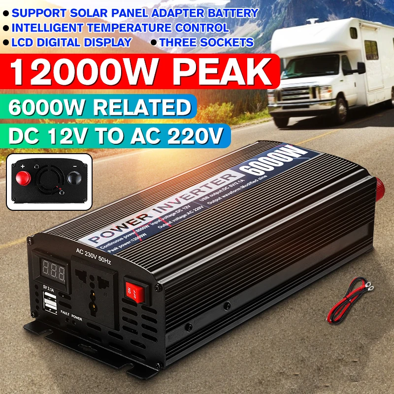 12000W Peaks Car Inverter 12V 220V 6000W LED Display 2 USB Modified Sine Waves Powers Inverter Voltage Convertor Transformer