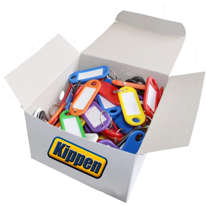 Kippen 1200B - Confezione da 100 Pezzi di Targhette Portachiavi in plastica, con anello ed etichetta.