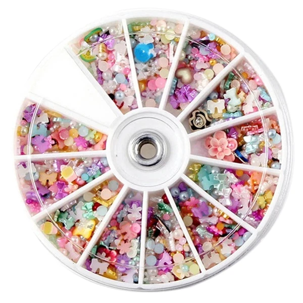1200pcs Wheel Mixed 3D DIY Nails Glitter Shining Rhinestones Art Tips Decoration