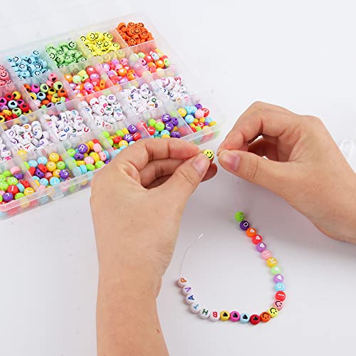 1200PZ Perline Colorate con Lettere Mini Perline Acriliche Bracciale Perline Lettere Faccina Perline per Braccialetti Collana Gioielli Bigiotteria Fai da Te