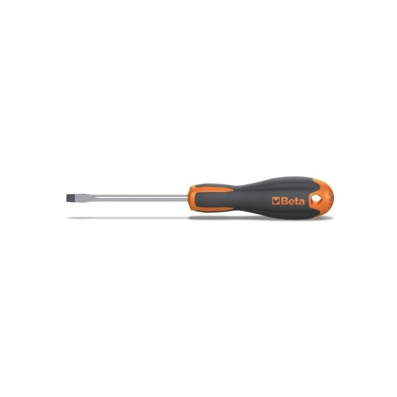 BETA 1201E | GIRAVITE LAMA PIATTA EVOX Giravite Evox per viti a testa con intaglio cromati punta nera L'evoluzione del giravite! Caratteristiche: • Impugnatura bimateriale per trasmettere il massimo della forza con il minimo sforzo e il miglior comfort possibili • Design ergonomico si adatta perfettamente al palmo della mano • Impronta e misura sono riportate sulla calotta sferica per una rapida individuazione • Collaudate lame Beta che offrono elasticità, durezza e resistenza all'usura ai vertici della categoria dei cacciavite professionali • Punta priva di cromatura per garantire un perfetto accoppiamento con la vite ed è protetta dall'ossidazione con un trattamento di fosfatazione • Appendibile grazie al foro sull'impugnatura