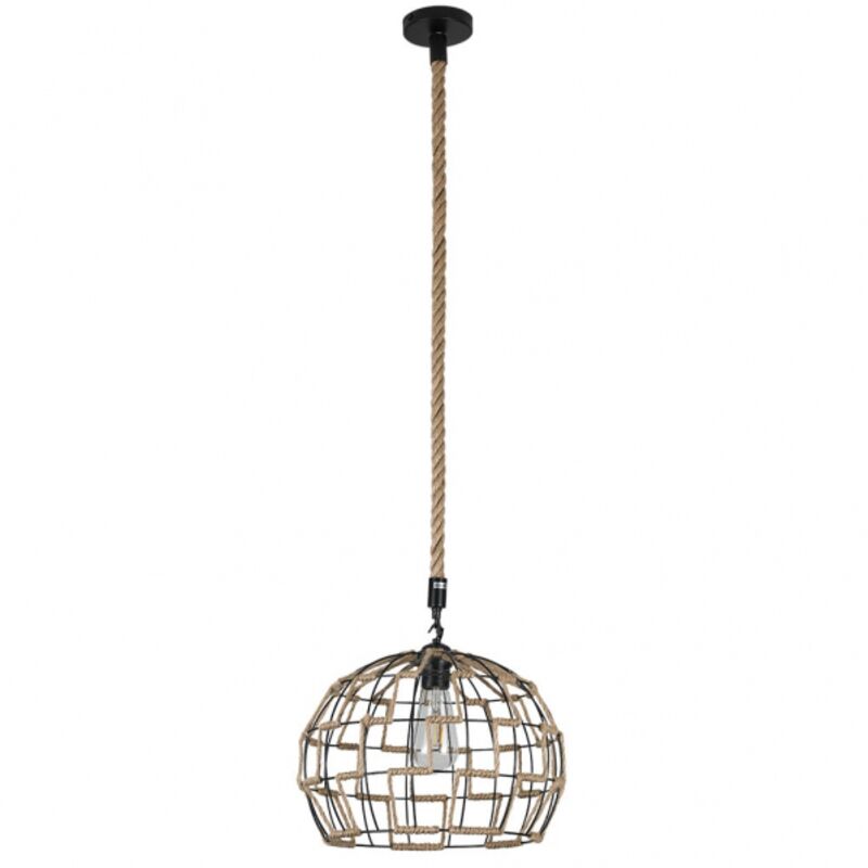 Pendente della serie Juta realizzato in corda e metallo. Questa famiglia è composta da una struttura in metallo in cui si intrecciano spessi fili di corda che svelano l'interno del ciondolo. Il risultato è un insieme di forme molto bello e originale, consigliabile completare con una bella lampadina decorativa a filamento, in modo che sia il centro della stanza che decori. È ideale per ambienti arredati nel nuovo stile rustico vintage. Le sue dimensioni sono 45 & lt, 113X35X35 cm con altezza regolabile. Ha un portalampada E27. Lampadina non inclusa. In questa serie sono disponibili vari design e dimensioni, tutti combinando corda e metallo.