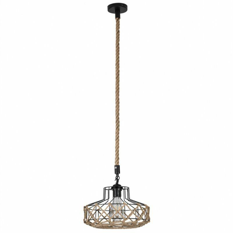 Pendente della serie Juta realizzato in corda e metallo. E' costituito da un telaio metallico in cui si intrecciano spessi fili di corda, dando vita ad un design molto originale che lascia passare la luce.Si consiglia di accompagnarlo con una bella lampadina a filamento per completarne l'estetica. È ideale per ambienti arredati nel nuovo stile rustico vintage. Le sue dimensioni sono 38 & lt, 110x30x30 cm con altezza regolabile. Ha un portalampada è E27. Da questa stessa serie è disponibile un'ampia varietà di design e dimensioni, tutti combinando metallo e corda.