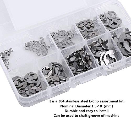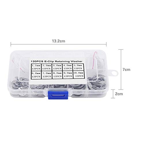 Materiale: acciaio inossidabile: resistenza alla ruggine, corrosione e resistenza all' olio. Il pacchetto include 10 misure E-clip, M1.5 / M2 / M2.5 / M3 / M4 / M5 / M6 / M7 / M8 / M9 / M10, totale 120 pezzi.