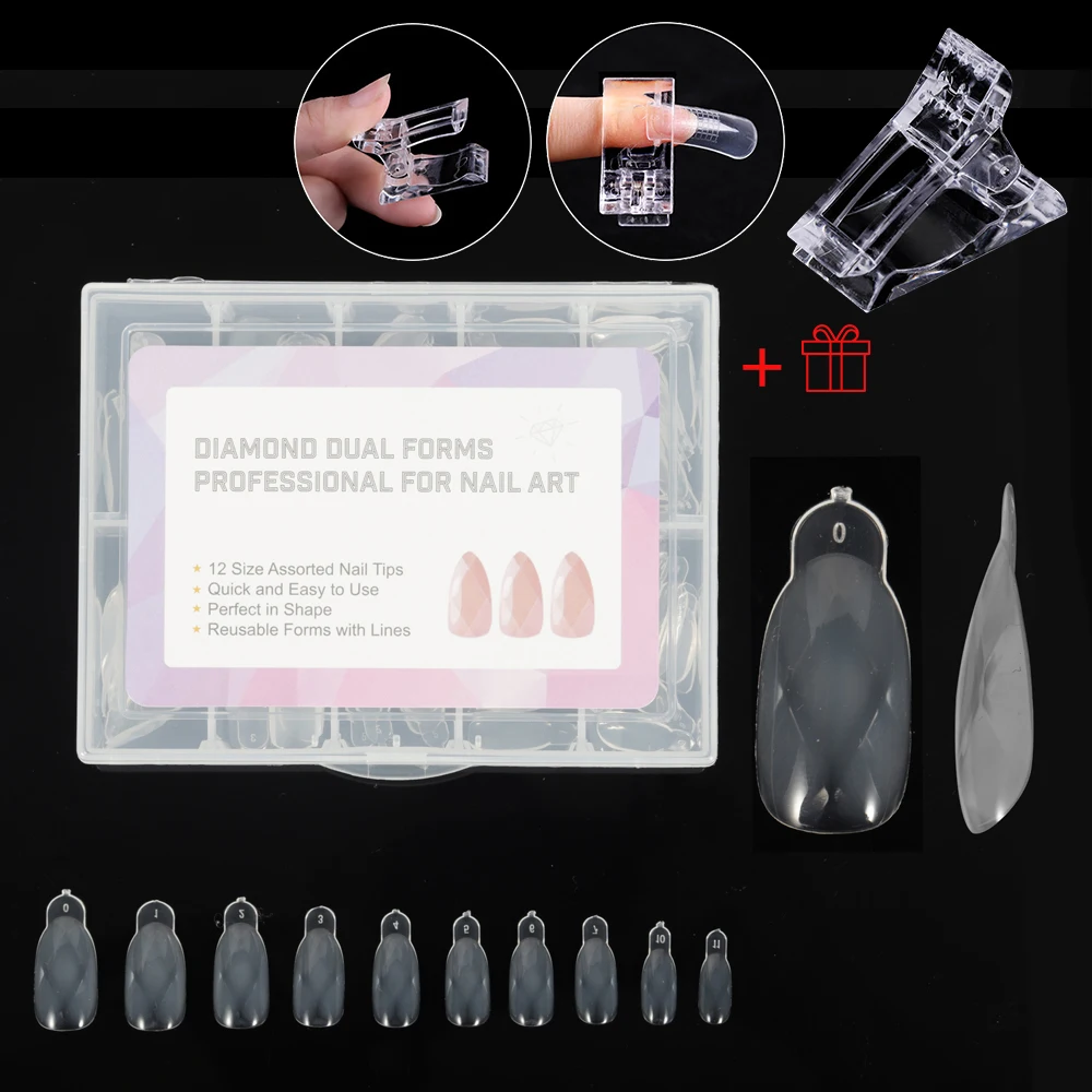 120pcs French Dual Extension Nail Forms False Nail Tips Soft Poly Gel System UV GEL Acrylic DIY Nail Decoration Nail Art Mold