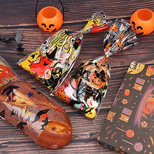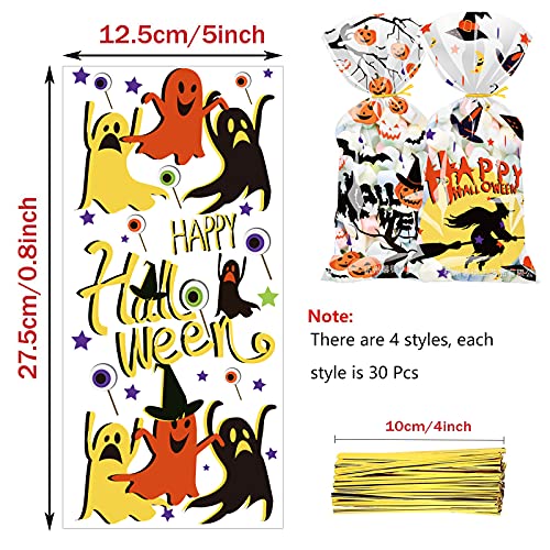 120pcs Halloween Caramelle Regali Sacchetti,Sacchetti Halloween Dolce Biscotti per Bambini Dolcetto o Scherzetto Gioco Zucca Strega Scheletro Ragnatela Sacchetti