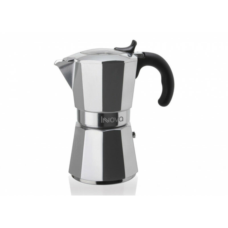 Miss Moka Innova 6 tazze Made in Italy in alluminio alimentare ed acciaio manico ergonomico e svitabile guarnizione in silicone, igienica, facile da pulire e resistente al calore beccuccio anti-goccia oblò trasparente adatta a piani di cottura ad induzione