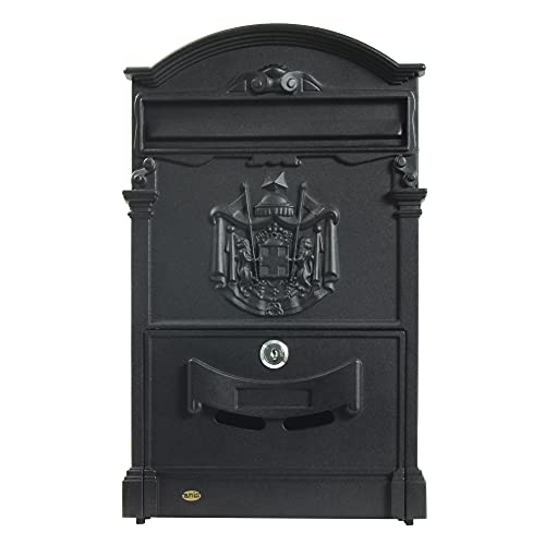 AMIG 12212 - Cassetta postale da esterno stile classico Modello 4 | Realizzato in alluminio pressofuso | Colore nero opaco | Misure 40 x 24 x 8 cm