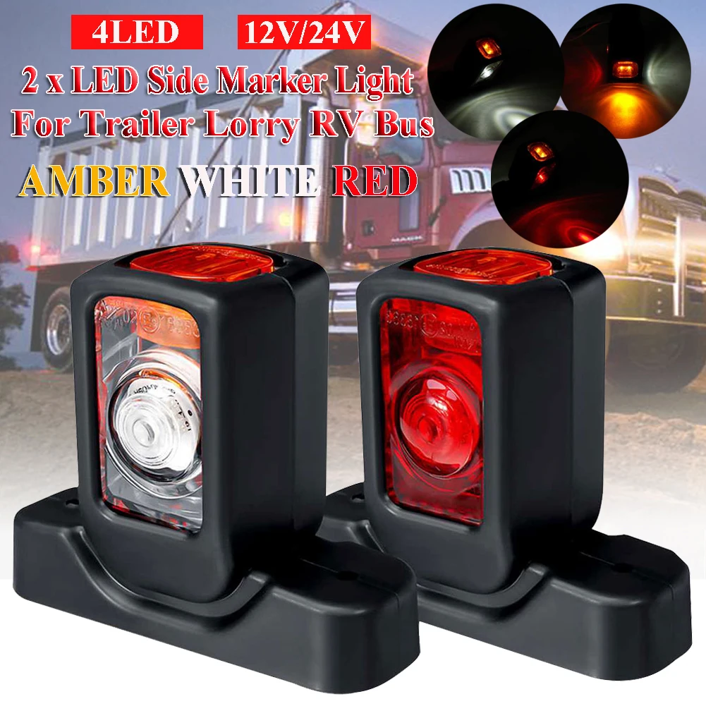1 Pair 12/24V Truck LED Side Marker Light Triple Amber White Red Indicator Lamps For Trailer Lorry RV Bus Side Marker Light