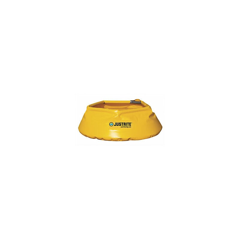 Vasca pieghevole di sicurezza POP-UP, speciale telone in vinile con anello in espanso, capacità 76 l. Fornitura = montato. Capacità di raccolta = 76 l. Diametro = 711 mm. Altezza = 279 mm. Peso = 0.5 kg. Materiale = vinile. Situazione = reazione alle perdite (emergenza), prevenzione delle perdite. Caratteristiche = deviazione / delimitazione / raccolta. Tipo di perdita = versamenti, gocciolamento. Frequenza di utilizzo = multiplo. Luogo d'impiego = per interni ed esterni. Sollecitazione = pesante. Colore = giallo. Tipo di prodotto = vasche pieghevoli. Trasportabili, pieghevoli e leggere. Aprire - Scuotere - Posizionare. Durante il riempimento si sollevano automaticamente grazie all'anello in PU espanso sul bordo superiore. Per perdite su veicoli, fusti, tubazioni, tubi, macchinari ecc. Speciale telone in vinile particolarmente resistente e antistrappo, lavabile. Pieghevole per un ingombro ridotto.