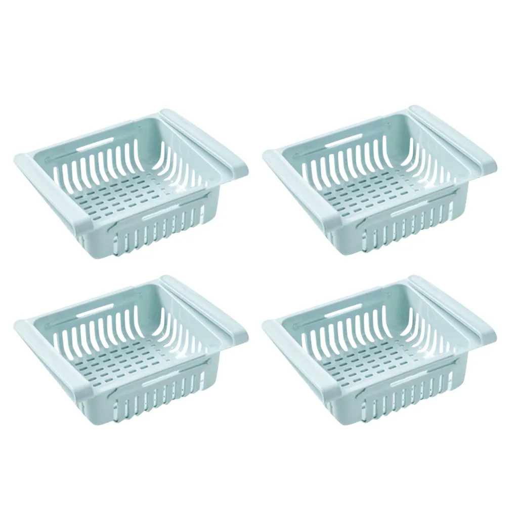 1/2/4 Pcs Adjustable Storage Organizer Fridge Freezer Organizer Refrigerator Storage Rack Shelf Drawer Kitchen Storage Organizer