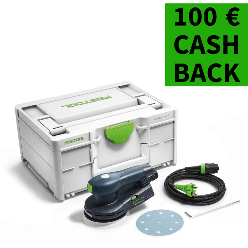 Festool Levigatrice orbitale ETS EC 125/3 EQ-Plus - 576341 La levigatrice compatta per una finitura perfetta. Vantaggi e benefici Lunga durata dell'utensile grazie al motore con tecnologia EC senza spazzole e con il nuovo frena platorello rivestito in metallo duro Regolazione continua del numero di giri e mantenimento costante in caso di carico L'interruttore a tasto in posizione ideale impedisce l'accensione e lo spegnimento incontrollati Con platorello Jetstream per un'aspirazione ottimale Principali applicazioni Ideale per la levigatura di bordi ed elementi sagomati Ideale per superfici verticali e lavori sopra testa Levigatura dei punti di connessione di riparazioni Dotazione platorello StickFix Ø 125 mm (morbido-HT), cacciavite da 5, Systainer SYS3 M 187 (Condizioni di garanzia, vedere www.festool.fr/service) Tipo di azionamento Rete, Potenza 400 W, Nr. giri mov. eccentrico 6000.00 - 10000 min?¹, Corsa di levigatura 5.00 mm, Platorello di levigatura intercambiabile Ø 150.00 mm