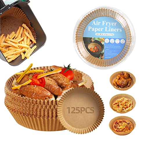 125Pezzi Carta Forno Per Friggitrice Ad Aria,Antigrasso Antiaderente, Fodera Monouso per 2,5-5 litri Air Fryer (16cm)