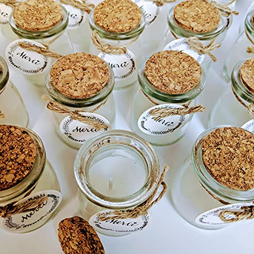 12Candele in vasetto di vetro, con etichetta scritta lingua francese Merci, spago e tappo sughero, idea regalo per invitati matrimonio, battesimo, compleanno, accessorio ringraziamenti, TE Whaka