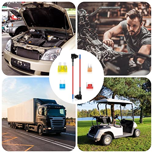 12pcs 12V-24V Portafusibili a Lama con 16AWG Filo, ATC Standard Medio Dimensioni ADD-a-Circuit Fusibili Tap, con 12pcs Fusibili a Lama (5A/10A/15A/20A)