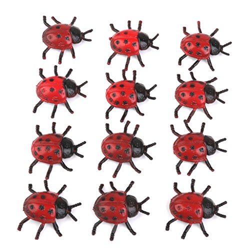 12pcs Artificiale Scarabeo Insetto Modello Giocattolo Di Plastica Rosso + Nero
