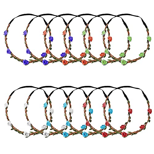 12Pcs Corona di Fiori Alla Moda, Corona di Fiori Regolabile, Cerchietti con Ghirlande Floreali, Cerchietto con Fiori Multicolori, per Matrimoni, Festival, Feste, Fotografia di Vacanza
