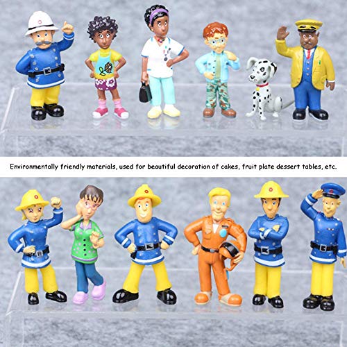 SZWL 12pcs Fireman Cake Topper, Mini Anime Figure Models, per Bambini Compleanno Doccia Theme Party Cake Decoration Supplies