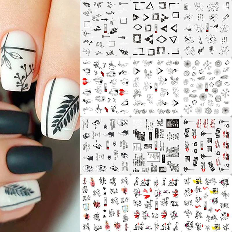 12Pcs/Set Love Letter Slider For Nail Art Decorations Sticker Water Transfer Decal Sticker Flower Leaves Girl Manicures DIY Tips
