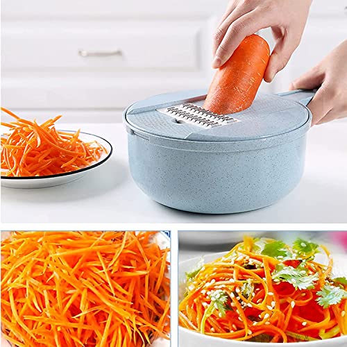 ●● 【12 pezzi/set affettaverdure multifunzione】 In questo set di affettatrici e tritacarne ci sono 5 lame intercambiabili in acciaio inossidabile, un contenitore per alimenti, uno scolapasta con manico, un paramano, un pelapatate, una scatola per la conservazione delle lame, un uovo separatore bianco e un pannello tagliaverdure. La grattugia con contenitore facilita il taglio di frutta e verdura.