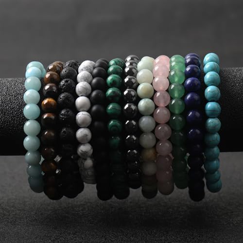 【Set di bracciali con perline naturali】 Set di 12 diversi braccialetti con perline di pietra, tra cui braccialetto occhio di tigre, braccialetto in pietra lavica, braccialetto turchese bianco, offrono una varietà di stili tra cui scegliere e adatti per l'uso quotidiano. Set di gioielli a prezzi accessibili, quantità e qualità assicurate, meritano da comprare.